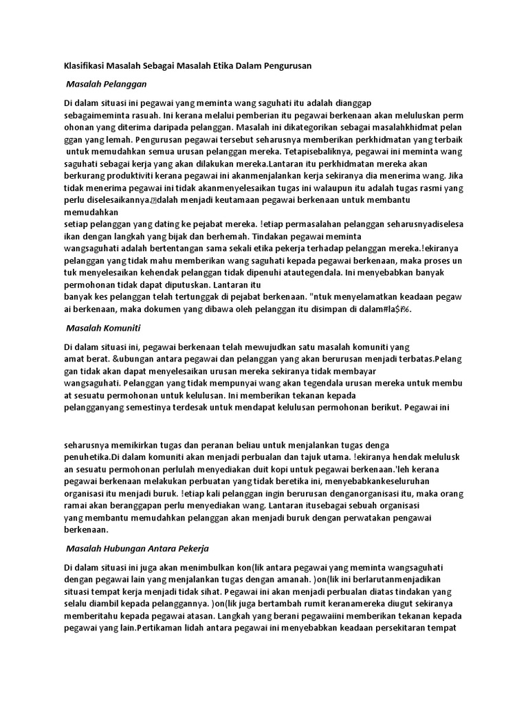 Contoh Masalah Etika Dalam Pengurusan Dengan Ciri Masalah Etika