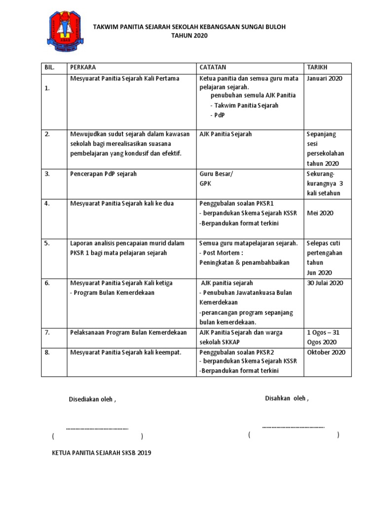 Perancangan Tahunan Panitia Sejarah Sekolah Rendah 2020