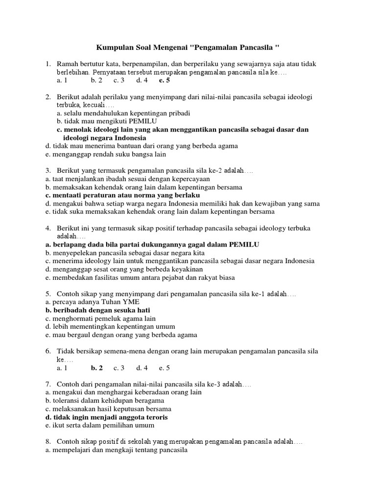 Contoh Soal Pengamalan Pancasila